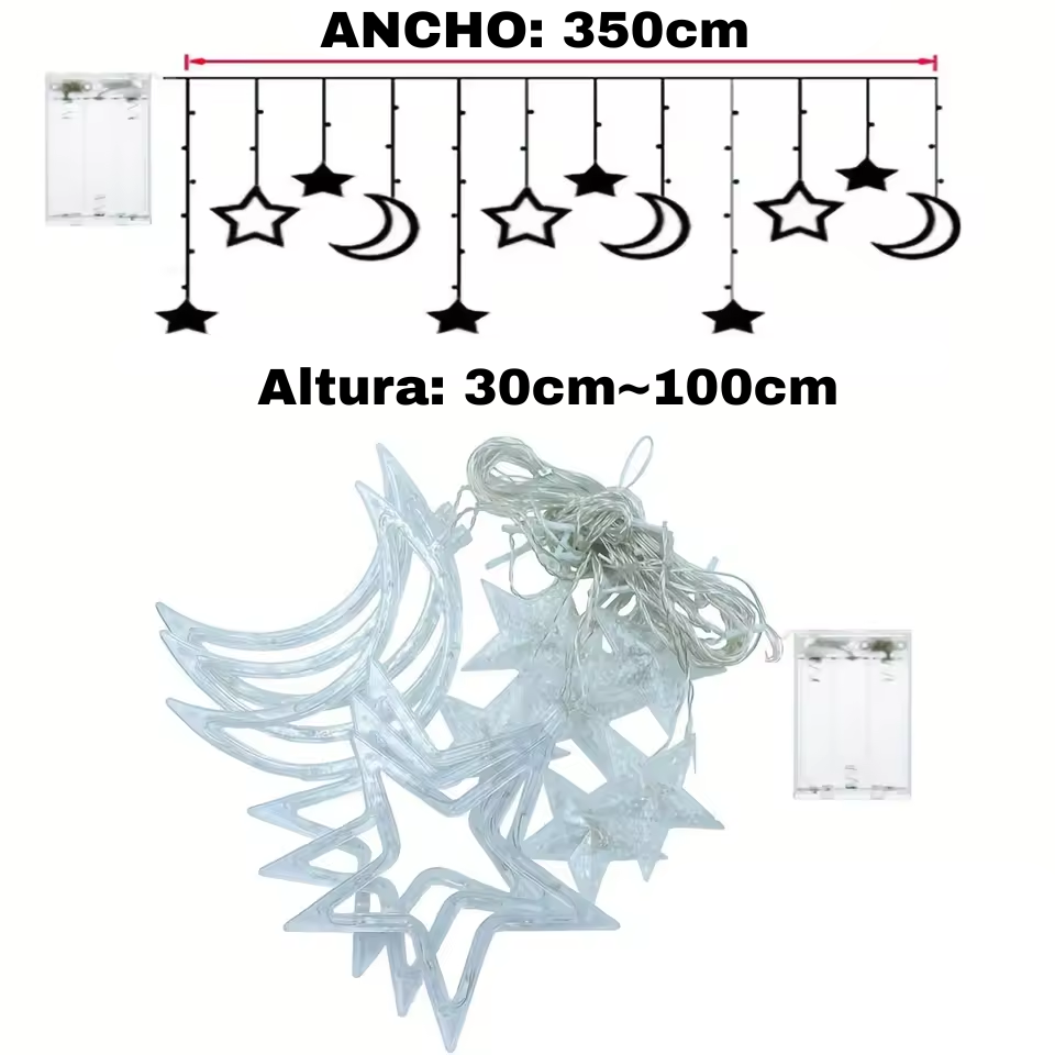 - Diseño: Estrellas y lunas decorativas que brindan un efecto mágico y festivo.